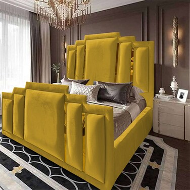 إن هاوس باريس هيكل سرير منجد بالمخمل - نفر - 200×120 سم - ذهبي