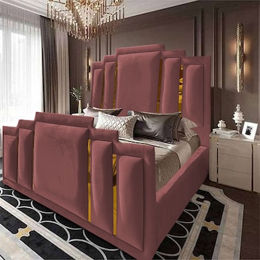 إن هاوس باريس هيكل سرير منجد بالمخمل - نفر - 200×90 سم - زهري غامق
