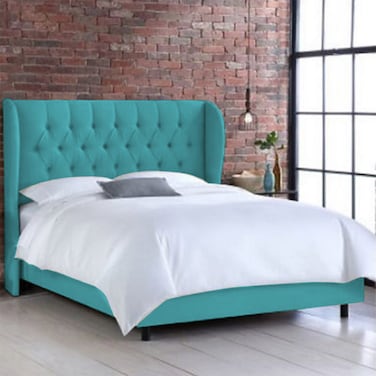 إن هاوس روما هيكل سرير منجد بالمخمل - نفر - 200×90 سم - تركواز
