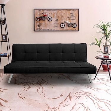 - إن هاوس ساندي أريكة سرير 2 في 1 منجدة بالمخمل - أسود