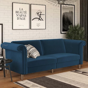 - إن هاوس سيرينا أريكة سرير 2 في 1 منجدة بالمخمل - كحلي
