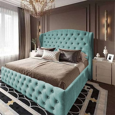- إن هاوس سيرين هيكل سرير منجد بالمخمل - نفر ونص - 200×160 سم - تركواز