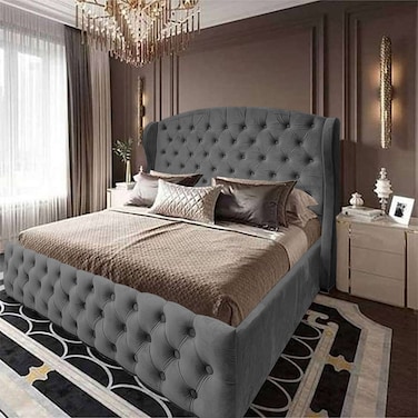 - إن هاوس سيرين هيكل سرير منجد بالمخمل - نفر - 200×90 سم - رمادي غامق