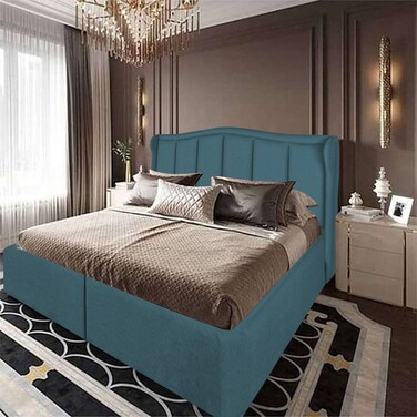 - إن هاوس شومت هيكل سرير منجد بالكتان - نفر - 200×100 سم - تركواز