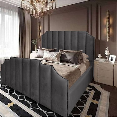 إن هاوس تاج هيكل سرير منجد بالمخمل - نفر ونص - 200×160 سم - رمادي غامق