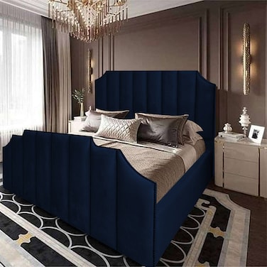 - إن هاوس تاج هيكل سرير منجد بالمخمل - نفر - 200×120 سم - كحلي