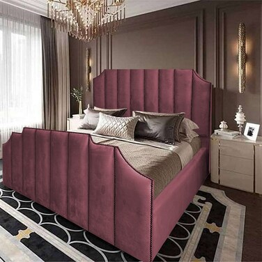 - إن هاوس تاج هيكل سرير منجد بالمخمل - نفر - 200×90 سم - زهري غامق