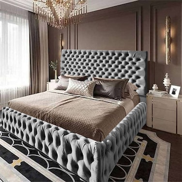 - إن هاوس فالينسا هيكل سرير منجد بالمخمل - نفرين - 200×180 سم - رمادي