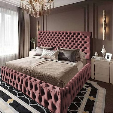 إن هاوس فالينسا هيكل سرير منجد بالمخمل - نفر - 200×90 سم - زهري غامق