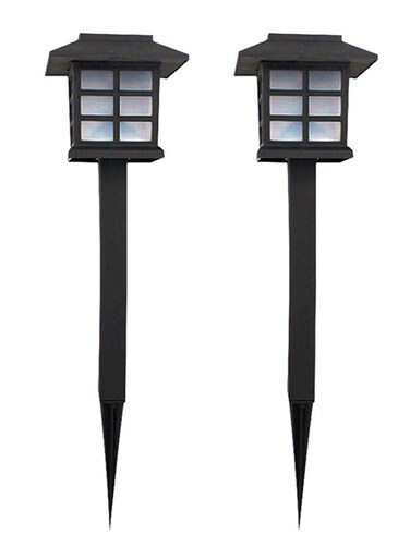 2-Piece Solar Powered Outdoor Landscape LED Lamp Set أسود
