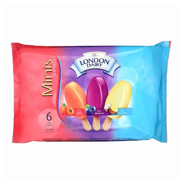 لندن ديري ايسكريم سوربيت بطعم البينا كولادا، التوت الأزرق، الخوخ والمشمش 50مل ×6
