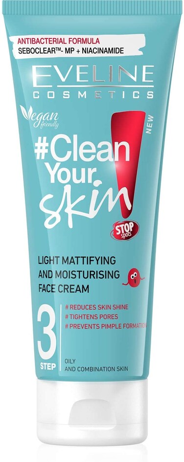 كريم مرطب ومزيل اللمعة للوجه، يضمن العناية اليومية للبشرة الدهنية والتي تعاني من مشاكل معقدة - يعمل على تجديد نشاط الغدد الدهنية ، ويمنع تكوين الرؤوس السوداء ، ويلمع الجلد ، ويمتص الدهون الزائدة.الكريم لا يسد مسام البشرة يخفف الالتهاب. قوام الكريم الخفيف يسمح بالامتصاص السريع وهو أساس ممتاز للمكياج. يحتوي زيت شجرة الشاي على مفعول مضاد للبكتيريا ، ويخفف بشكل فعال أعراض التهيج ويعيد توازن البشرة.خلاصة شجرة الشاي تعالج التلف ، وتعالج حب الشباب ، وتنظم الدورة الدموية والتمثيل الغذائي ، وتنعيم البشرة. يتغلغل مركب SEBOCLEARTM-MP الفريد بشكل فعال في البشرة ، ويمنع تكوين العيوب ، ويقلل من إفراز الدهون ، ويزيل اللمعان غير الجمالي.