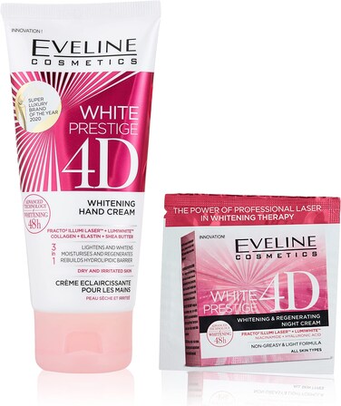 يغزي ويُبيض: كريم تبييض اليدين المغذي والمجدد بفضل مركب التبييض الفريد من نوعه من لوميسكين 4 دي وايت يقلل من تغير اللون ويعمل على اختفائه. يعتني الكريم بفعالية كبيرة ببشرة اليد، مما يضمن لها التجديد والترطيب الفوري. تركيبة مركزة غنية بالبيتين الطبيعي، تُحسن مستوى الترطيب لتترك اليدين حريرية وناعمة.