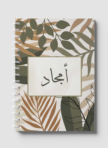 لوحة دفتر سلك ٦٠ ورقة بغلاف من الورق المقوى بتصميم اسم امجاد بالعربي، لتسجيل الملاحظات وتدوين التذكيرات للعمل أو الجامعة أو المدرسة