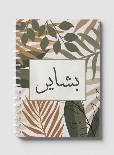 لوحة دفتر سلك ٦٠ ورقة بغلاف من الورق المقوى بتصميم اسم بشاير بالعربي، لتسجيل الملاحظات وتدوين التذكيرات للعمل أو الجامعة أو المدرسة