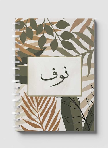 لوحة دفتر سلك ٦٠ ورقة بغلاف من الورق المقوى بتصميم اسم نوف بالعربي، لتسجيل الملاحظات وتدوين التذكيرات للعمل أو الجامعة أو المدرسة