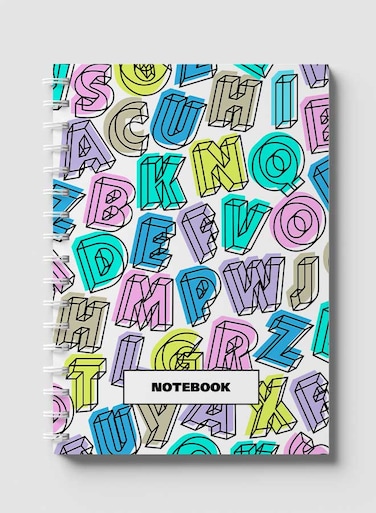 لوحة دفتر سلك ٦٠ ورقة بغلاف من الورق المقوى بتصميم احرف بالانجليزية، لتسجيل الملاحظات وتدوين التذكيرات للعمل أو الجامعة أو المدرسة