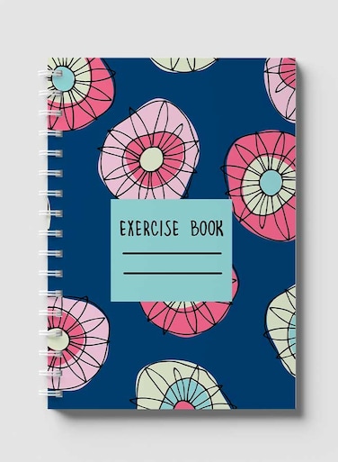 لوحة دفتر سلك ٦٠ ورقة بغلاف من الورق المقوى بتصميم كتاب التدريبات مع زهور ملونه، لتسجيل الملاحظات وتدوين التذكيرات للعمل أو الجامعة أو المدرسة