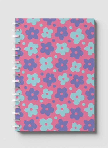 لوحة دفتر سلك ٦٠ ورقة بغلاف من الورق المقوى بتصميم زهور بالازرق ، لتسجيل الملاحظات وتدوين التذكيرات للعمل أو الجامعة أو المدرسة
