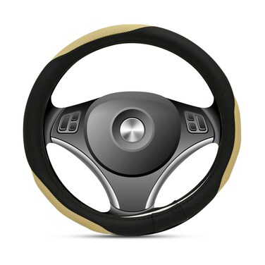 غطاء عجلة قيادة عالمي ، غير قابل للانزلاق ، مرن ، غطاء عجلة قيادة للرجال والنساء ، الحجم: متوسط ، اللون: أسود مع بيج