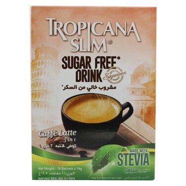 تروبيكانا سليم مشروب كافي لاتيه بدون سكر مع ستيفيا 10 أكياس