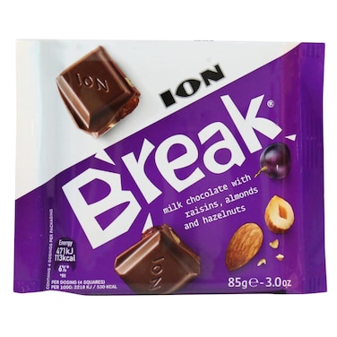 أيون بريك شوكولاتة الحليب بالزبيب واللوز والبندق 85جرام