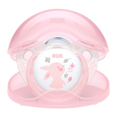 نوك لهاية سيليكون للأطفال مع علبة، 0-6 شهور، وردي