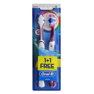 أورال-بي كومبليت 5 واي كلين فرشاة أسنان متوسطة الحجم - متعددة الألوان 2 قطعة