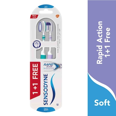 سنسوداين رابيد أكشن فرشاة أسنان ناعمة - أبيض 2 قطع