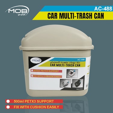 سلة قمامة السيارة، سلة مهملات متعددة 500 مل يمكن تثبيتها مع وسادة بسهولة، سلة المهملات منظم داخلي للسيارة رمادي - MOB AC488