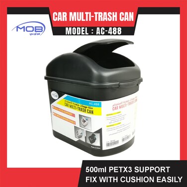 سلة مهملات متعددة 500 مل يمكن تثبيتها بسهولة مع وسادة، سلة قمامة/منظم داخلي للسيارة، أسود - MOB AC488