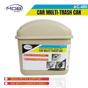 سلة مهملات السيارة، سلة مهملات متعددة، سلة قمامة السيارة 500 مل يمكن تثبيتها مع وسادة بسهولة، منظم السيارة الداخلي MOB AC488