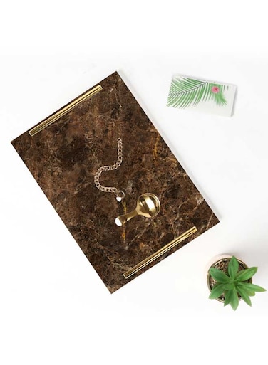 لوحة صينية تقديم مصنوعة من الأكريليك بمقابض معدنية ذهبية اللون مزخرفة بتصميم ملون ٣٠x٢٠ سم