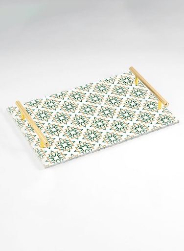 لوحة صينية تقديم مصنوعة من الأكريليك بمقابض معدنية ذهبية اللون مزخرفة بتصميم نمطي ٣٠x٢٠ سم