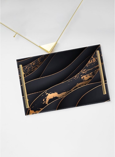 لوحة صينية تقديم مصنوعة من الأكريليك بمقابض معدنية ذهبية اللون مزخرفة بتصميم خطوط منوعة ٣٠x٢٠ سم