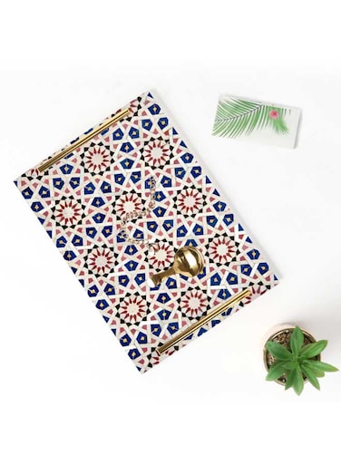 لوحة صينية تقديم مصنوعة من الأكريليك بمقابض معدنية ذهبية اللون مزخرفة بتصميم فسيفساء ٣٠x٢٠ سم
