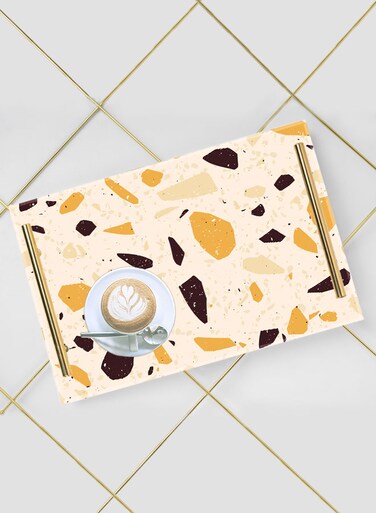 هذه الصينية الأنيقة والعملية تستخدم كصينية تقديم للطعام أو المشروبات. يمكن استخدامها أيضاً كديكور لزاوية القهوة أو المطبخ أو الطاولات أو غرفة المعيشة أو غرفة النوم، مما يضفي إحساساً بالجودة.