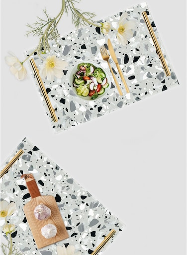 لوحة صينية تقديم مصنوعة من الأكريليك بمقابض معدنية ذهبية اللون مزخرفة بتصميم أرضية تيرازو ٣٠x٢٠ سم