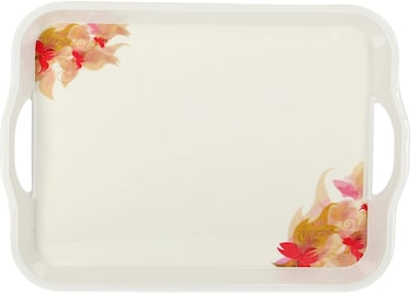 - <li>صينية مقاس 17.5 بوصة مع مقابض<li>تصميم زهور زاهية<li>مقابض مريحة<li>مصنوعة من الميلامين<li>هيكل قوي