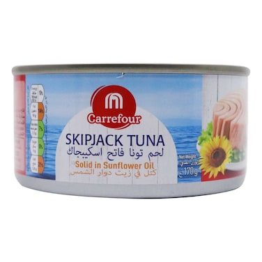 كارفور لحم تونا فاتح (اسكيبجاك) في زيت دوار الشمس 170 جرام