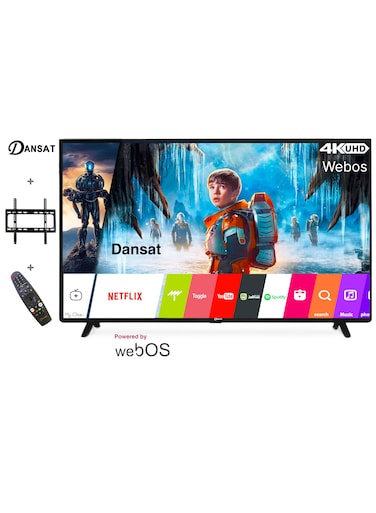 تلفزيون ويب أو إس ذكي بدقة فائقة الوضوح 4 كي مقاس 65 بوصة مزود بحامل جداري باللون الأسود وجهاز تحكم ماجيك - DTD6521UWS