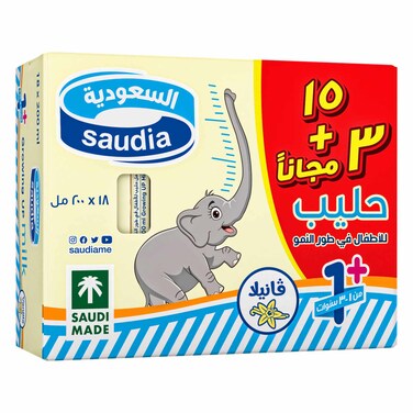 حليب السعودية للاطفال في طور النمو بنكهة الفانيليا 200 مل × 15 + 3