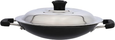 مقلاة صناعة ابا شاتي غير لاصقة مصنوعة من الالومنيوم مع غطاء من الستانلس ستيل متينة وثلاثية الطبقات ومزودة بمقبض بارد الملمس ومناسبة لكل المواقد موديل DC1913، الوان متعددة