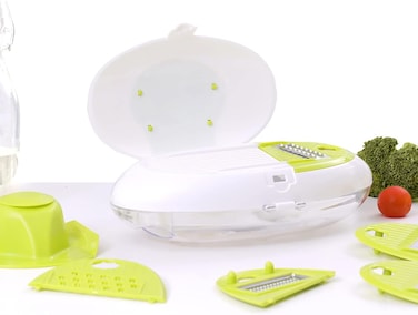 مصممة خصيصًا لتقطيع أو بشر أو تشريح الفواكه والخضروات. تتضمن أكسسوارات رائعة لتقطيع الطعام مما يقلل من وقت التحضير إلى النصف! سهلة الاستخدام للغاية، تجعل تعليب وحفظ الطعام والسلطة غايةً في السرعة.