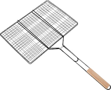 رويال فورد شواية حديد شبكية محمولة وقابلة للطي مطلية بالكروم مع مقبض خشبي، مناسبة لشواء الاسماك والخضروات والروبيان، مساحة شواء اكبر، موديل RF10384