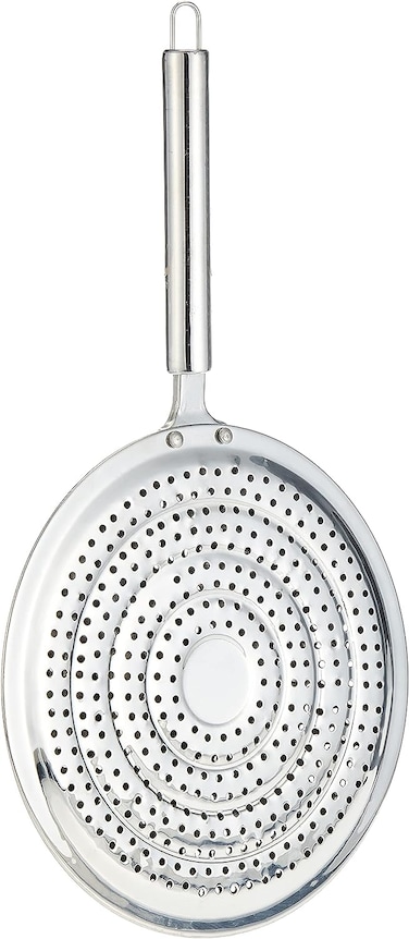رويال فورد شواية ستانلس ستيل من رويال فورد - تصميم مستدير مثقب بفتحات بيد طويلة انبوبية بخاصية اللمس الخارجي البارد وحلقة للتعليق، مثالية لطهو رقائق الباباد وخبز الروتي وخبز الشاباتي وفطائر البراثا