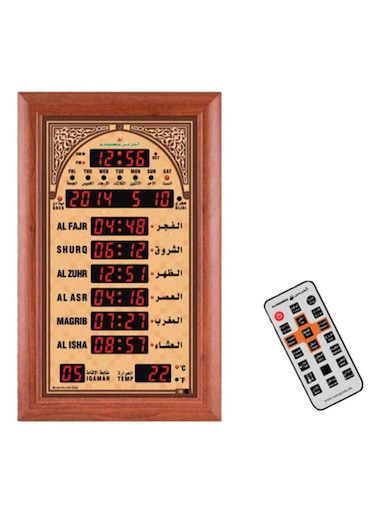 ساعة حائط رقمية مع جهاز تحكم عن بعد بتصميم إسلامي مناسب للمساجد بني/ذهبي 42*68سم