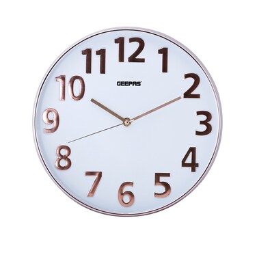 Geepas ساعة حائط GWC26013 من جيباس بأرقام ذهبية وردية ثلاثية الأبعاد - صامتة غير موقوتة، ساعة حائط دائرية مزخرفة لغرفة المعيشة، غرفة النوم، المطبخ (البطارية غير متضمنة)، ضمان لمدة عامين