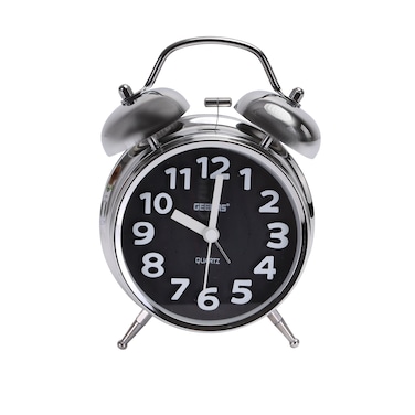 Geepas ساعة منبه مزدوجة الجرس GWC26020 من جيباس - منبه كلاسيكي عالي الجودة مع إضاءة خلفية، هيكل فضي من الكروم مع عدسة زجاجية، ساعة دائرية مزدوجة مع حركة مدببة، ضمان لمدة عامين