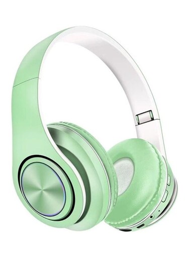 طقم سماعات رأس بلوتوث لاسلكية بتصميم يغطي الأذن أخضر
